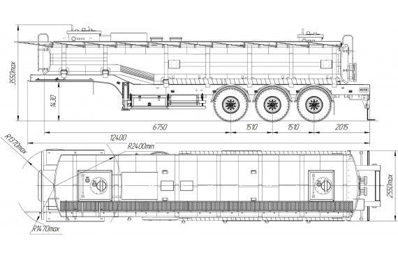 30 000 литров, прямое сечение, шины 425/85R21/6+1 или 385/65R22.5/6+1, рессорная или пневматическая подвеска