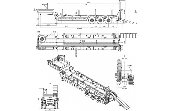 45000 кг, шины 445/65R22,5 или 395/85R20 / 6+1, платформа 10300 (11080 до трапов) x 2500 с уширителями до 3000 мм, механические трапы, ССУ 1510 мм, пневматическая или рессорная подвеска, съемные стойки 1500 мм, съемные борта
