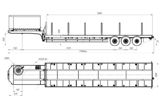 Полуприцеп ППВ-45, без трапов, платформа 13000 мм, пневматическая или рессорная подвеска, стойки Полуприцеп ППВ-45, без трапов, платформа 13000 мм, пневматическая или рессорная подвеска, стойки