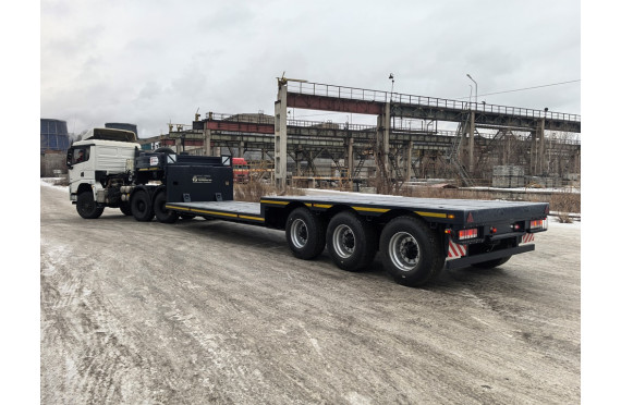 47000 кг, шины 395/85R20 или 445/65R22,5 / 6+1, платформа 11502 по трапам) x 2500 с уширителями до 3000 мм, треугольные аппарели, ССУ 1530 мм, рессорная подвеска, раздвижные коники 1500 мм